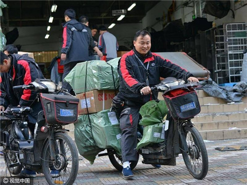 (作者:?jiǎn)涡聦?雙十一期間,順豐快遞員在送貨,圖片來自視覺中國,未經(jīng)授權(quán),請(qǐng)勿使用
