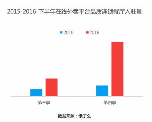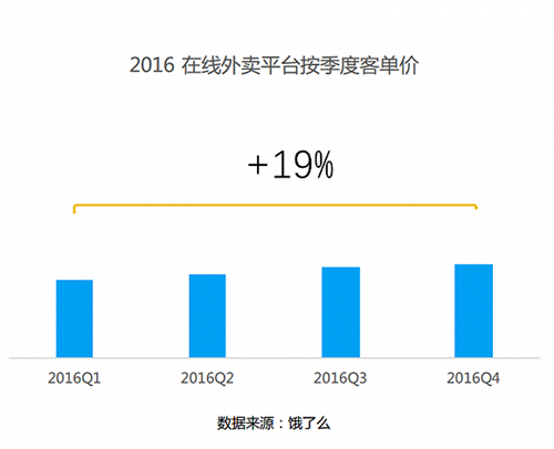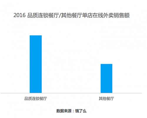 2016年,在線外賣平臺(tái)餓了么季度客單價(jià)提升19%,與此同時(shí)品質(zhì)連鎖餐廳入駐外賣平臺(tái)數(shù)量大幅提升,同時(shí)營業(yè)額相比普通餐廳也較高。