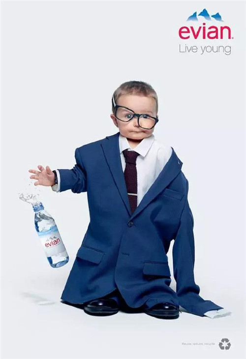今年依云寶寶的核心創(chuàng)意在于 Oversize,即喝了依云水,就能像嬰兒一樣看待這個(gè)世界,在視覺(jué)呈現(xiàn)上,它們讓寶寶們穿上超大碼的成人時(shí)裝。如果說(shuō)衣服代表了身份的話,這些穿著時(shí)裝造型的寶寶正是依云現(xiàn)在想要吸引的年輕顧客,而用 Evian 的全球營(yíng)銷(xiāo)總監(jiān) Patricia Oliva 的話說(shuō),這些年輕人很可能并沒(méi)有看過(guò)當(dāng)年的依云寶寶電視廣告。