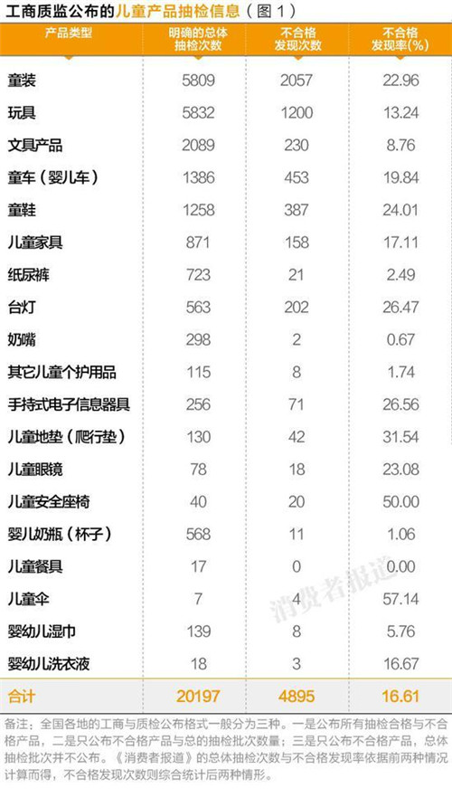 2017年5月,《消費(fèi)者報(bào)道》通過梳理全國126個(gè)工商與質(zhì)檢部門10年來公開的20197條兒童產(chǎn)品抽檢數(shù)據(jù),作出不合格品牌黑榜警示,以及重點(diǎn)不合格產(chǎn)品類型的消費(fèi)建議。