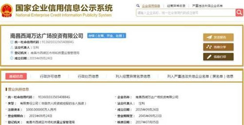 工商信息顯示,南昌西湖萬達(dá)廣場、鹽城萬達(dá)廣場兩家公司法定代表人均在今年發(fā)生變更。