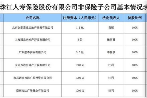 記者從珠江人壽官網(wǎng)了解到,除了買下南昌西湖萬達(dá)廣場之外,在珠江人壽公布的“非保險子公司基本情況列表”中,大同萬達(dá)房地產(chǎn)開發(fā)有限公司和四川崇州萬達(dá)廣場置業(yè)有限公司兩處萬達(dá)資產(chǎn),確實也在珠江人壽名下,持股比例均為100%,每家公司注冊資本均為1000萬元。