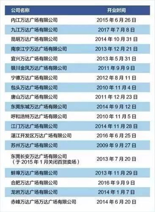 這幾家萬達(dá)廣場的股權(quán)變更時間分別為:2017年1月18日、2017年4月11日和2017年4月20日。