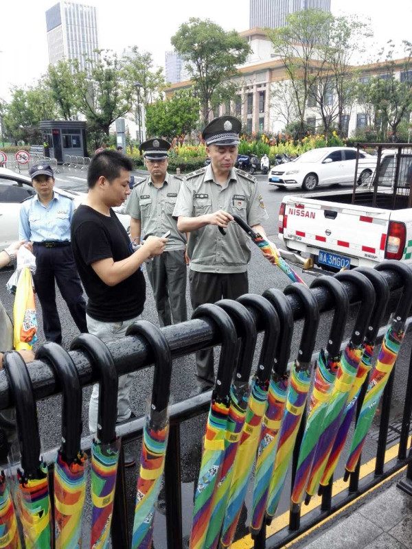 ?。ㄔ瓨祟}:共享雨傘現(xiàn)身杭城 一天就遭城管“下架”天水執(zhí)法中隊:投放存在占用公共設(shè)施的情況)
