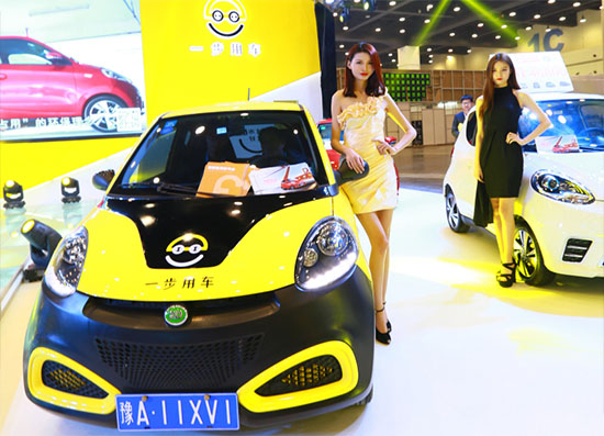 據(jù)了解這些黃色的電動汽車全部出自位于新能源展區(qū)T3展位的河南一步用車科技有限公司(以下簡稱一步用車)。