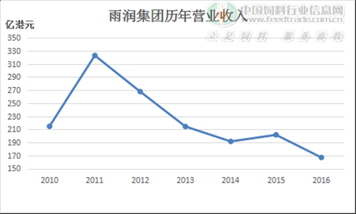 如上圖所示,自2012年開(kāi)始,雨潤(rùn)的收入開(kāi)始大幅度跳水,2016年的營(yíng)業(yè)收入基本相當(dāng)于2011年的一半,幾近腰斬。