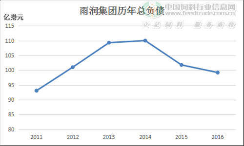 上圖顯示出了雨潤(rùn)集團(tuán)自2011年開(kāi)始的負(fù)債金額,營(yíng)收腰斬的情況下,雨潤(rùn)集團(tuán)仍然債臺(tái)高筑。