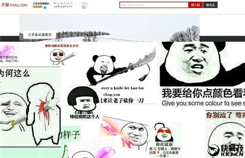 當(dāng)天下午一點(diǎn)半,我們更換了一個(gè)與暴漫相關(guān)的頁面,仍是粗制濫造的被黑畫風(fēng)。因?yàn)橄挛缫稽c(diǎn)的時(shí)候,店鋪已經(jīng)到了流量峰值,觸達(dá)全網(wǎng)用戶后,為了保持話題持續(xù)關(guān)注度,我們臨時(shí)增加了與黑客博弈的環(huán)節(jié),這時(shí)傳播的渠道已經(jīng)不是阿里系內(nèi),而是微博。為了迎合微博用戶的喜好,制造第二次被黑使用暴漫表情包元素,并埋下與暴漫合作伏筆。