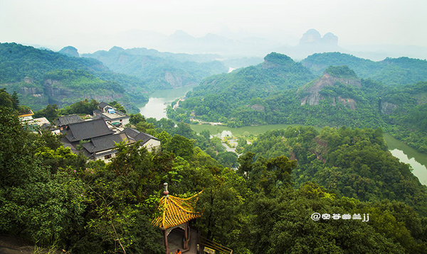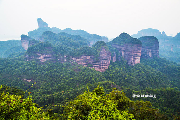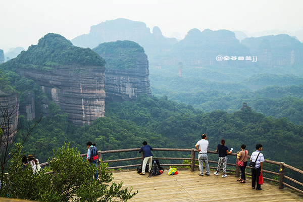 從山腳下乘索道上丹霞山主山之巔—寶珠峰,霧突突的天,在騰空而上的索道上縱目遙望置身于崇山峻嶺之中,不一會兒就到達寶珠峰頂,走到東部觀景臺(韶音亭)遠眺,群峰疊翠,連綿起伏,“無限風(fēng)光在險峰”的詩情畫意,得到淋漓盡致的體現(xiàn),讓人感受到世界名山的神奇魅力。