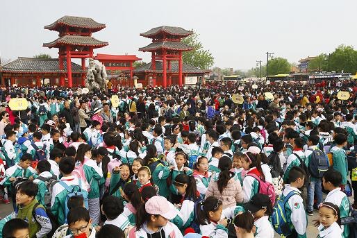 柳色如煙絮如雪,別樣春美景,盡在清明上河園。如織的游人中自然少不了研學(xué)旅行少年們的身影。