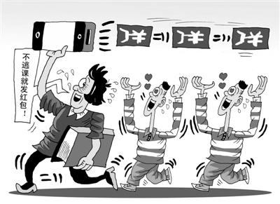 隨著微信紅包深度嵌入日常場景,其注定會經(jīng)歷一個“功能擴張”的過程。在最新的案例中,微信紅包被描述成“防止學(xué)生翹課”的利器。之于此,相關(guān)新聞報道繪聲繪色,幾乎讓人不信都不行……的確,在此事中輿論籠統(tǒng)化的敘事模式,與生俱來充斥著一種沖突性與荒誕感,因而很快就引發(fā)了廣泛關(guān)注。但是我們?nèi)匀徊坏貌蛔穯柕氖牵录镜哪?,是否當真如此?所謂“紅包防翹課”一說,有無一絲牽強?