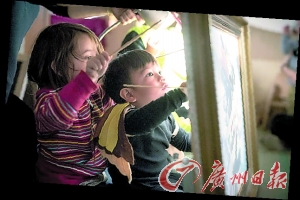 中英雙語日托中心的孩子們跟著中文老師學(xué)習(xí)中文和玩游戲,還觀看具有中國特色的皮影圖案。
