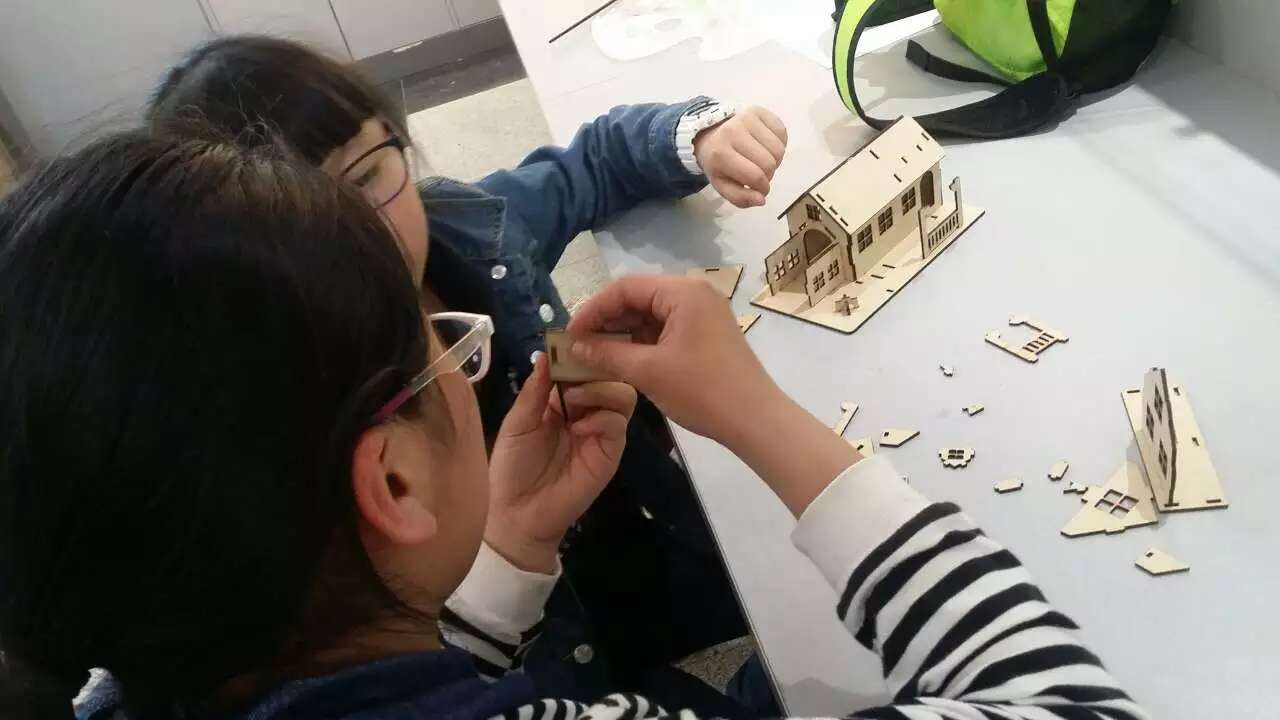 在激光加工區(qū),用激光機(jī)切割而成的大小不一、形狀各異的零件引起了同學(xué)們的興趣。同學(xué)們齊心協(xié)力,將一個個零件拼裝成了房屋模型。看著一棟棟別墅呈現(xiàn)在眼前,孩子們歡呼雀躍,體驗著動手動腦的樂趣,感受著成功的喜悅。