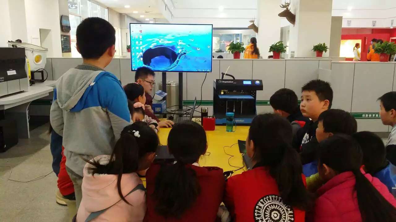 在3D打印區(qū),科技館的工作人員向同學(xué)們講解:“3D打印機(jī)是將金屬、陶瓷、塑料、砂等實實在在的原材料一層層堆積疊加起來,最終把三位模型變成實物。可以打印出服裝、建筑模型、汽車、各種配件等。”孩子們迫不及待地創(chuàng)造著、制造著自己的產(chǎn)品,將自己的想法變?yōu)楝F(xiàn)實。