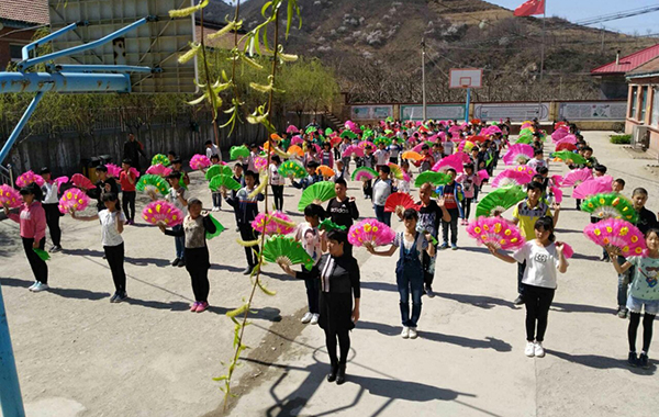 在村小工作了一段時間后, 趙銀鳳發(fā)現(xiàn)了一個問題:一個孩子的成長離不開家庭教育,學(xué)校百分之五十的學(xué)生都是留守兒童,整個村莊有很多留守婦女、空巢老人,這些家長的業(yè)余生活就是在聊天、打麻將中度過, 卻沒有時間關(guān)注孩子成長。于是她有了一個大膽的想法:把家長、村民也納入教育對象,利用寒暑假、休息日調(diào)動家長們的積極性。于是她幫助村民成立老年協(xié)會、婦女學(xué)校、家長學(xué)校、秧歌隊等組織,組織孩子們、家長與村民節(jié)目表演等活動,推動學(xué)習(xí)型家庭、學(xué)習(xí)型組織、學(xué)習(xí)型社區(qū)的建立,使學(xué)校成為整個村莊的文化中心;家、校、村三者結(jié)合,把村民帶到課堂,把課堂帶進村莊,不僅提升了學(xué)生的能力和品質(zhì),提高了村民的生產(chǎn)生活技能,豐富了村民的文化生活,改變了村里白喜事大操大辦等陋習(xí)。