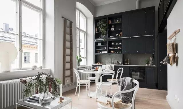 挑高天花板,具有質(zhì)感的涂料,這所優(yōu)雅的黑白公復(fù)式寓,經(jīng)過改造后巧妙地運用色彩及各種細(xì)節(jié)裝飾,將北歐的簡約與新古典風(fēng)格進行了全新的詮釋。