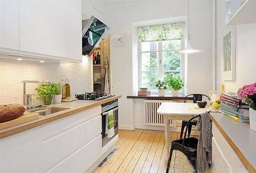 一般家庭的廚房多采用白色或淺色裝潢以及不銹鋼水槽的設(shè)置,色彩豐富的植物可以柔化硬朗的線條,為廚房注入一股生氣。通常廚房位于窗戶較少的朝北房間,由于陽(yáng)光少,應(yīng)選擇喜陰的植物,如廣東萬(wàn)年青和星點(diǎn)木之類(lèi)。而且廚房是操作頻繁、物品零碎的工作間,煙和溫度都較大,因此不宜放大型盆栽,而吊掛盆栽則較為合適。