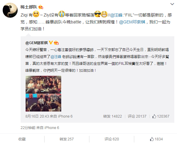 近日,一張章子怡發(fā)布會挺著“大肚”的照片引發(fā)網(wǎng)友熱議,雖然只是假扮孕婦,卻引來大波網(wǎng)友詢問何時準備要寶寶,可見網(wǎng)友對兩人感情生活的關注。8月16日,鄧紫棋在微博上曬出汪峰為其過生日的照片,17日中午,汪峰轉(zhuǎn)發(fā)此微博并稱要為學員們加油,17日下午,章子怡回復汪峰:“Ziqi有~Ziyi沒有,等著回家跪榴蓮。”