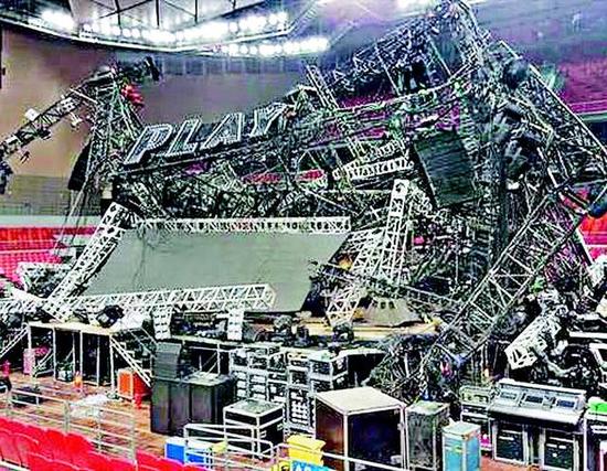 據(jù)臺灣媒體報道,蔡依林(Jolin)本周六(31日)預定在廣西南寧舉行“蔡依林2015 PLAY世界巡回演唱會”,現(xiàn)場舞臺近日已幾乎準備搭建完成,不料,該舞臺29日下午5點多,多條大型鋼鐵結構的燈架突然倒塌砸下來,現(xiàn)場一片混亂,造成1名工人意外死亡,且有13名工人受傷。Jolin人還沒到現(xiàn)場,本來預計今日(30日)抵達,若是在演唱會當天才發(fā)生倒塌,后果更是不堪設想。經(jīng)紀人表示正在了解狀況,是否取消演唱會,仍要看舞臺修復狀況。