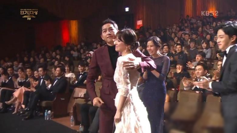 2016年KBS演技大賞最重要大獎(jiǎng)由《太陽的后裔》宋仲基和宋慧喬獲得,兩人一上臺(tái)皆難掩激動(dòng)情緒,忍不住哽咽。宋慧喬對于獲得“最佳CP獎(jiǎng)”發(fā)表感言,“和喜歡的人一起領(lǐng)獎(jiǎng),真的很開心”,在主持人全炫茂的詢問之下,滔滔不絕地稱贊宋仲基就和劇中的劉時(shí)鎮(zhèn)一樣,“幽默、聰明、真誠又溫柔”,宋仲基則回贊對方,“真的非常美麗又大方”,他們更現(xiàn)場重現(xiàn)了“什么血型”的撒嬌,彼此溺愛的眼神超吸睛。