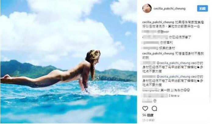 平時愛運動的張柏芝,時常曬出美照,5日她PO出外國模特兒裸照寫下:“如果不是有家庭負擔,好想她這樣滑浪”。似乎也想放縱一下,網友大贊這身材超美,她感嘆說:“可惜不是我的”,可見對自己要求頗高。