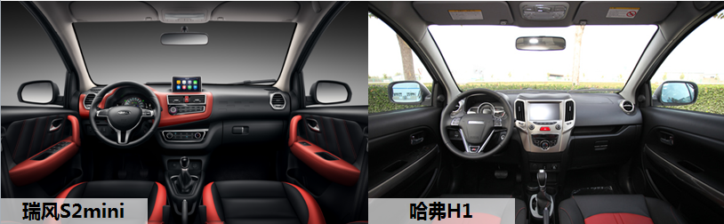內飾設計方面,瑞風S2mini采用紅黑配色,給人活潑時尚之感。且中控臺造型簡潔,懸浮式顯示屏的點綴更顯科技感。哈弗H1的內飾設計雖同走簡潔風,但其中控臺銀色面板卻稍顯老氣,顯然與90后追逐新鮮感的個性不符。