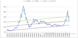 上證指數(shù)能夠沖過上軌只有兩次:2007年3月和2015年3月,突破后的結(jié)局也極其相似。上證指數(shù)25年走勢形成的運行通道,反映了我國經(jīng)濟金融環(huán)境對股市運行的約束,股市一旦突破這個約束,就會受到客觀規(guī)律的懲罰。2008年股市跌到1664是市場對過分上漲的正常調(diào)整,即使4萬億刺激計劃以后,市場依然逃脫不出這個制約,在2013年依然跌到1849點。如果今年股市不瘋漲到3800點之上,即使有再多的融資,再多的敗類,再多的敵對勢力,也不可能導(dǎo)致這么大的金融動蕩。既然我們把股市泡沫吹到這個地步,只能承受其破滅后帶來的痛苦,“出來混,總要還的”。