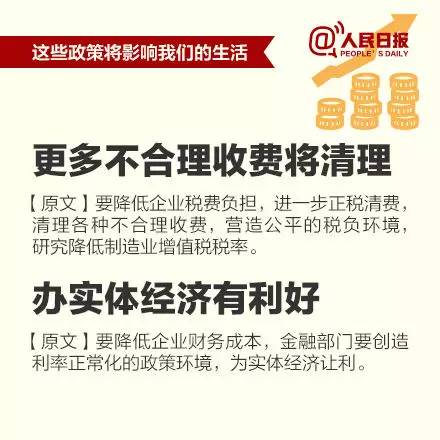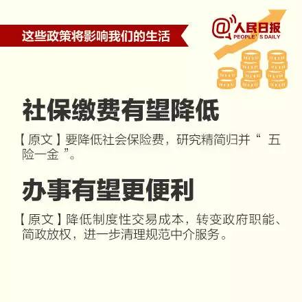 這次會議還用十個“更加注重”指明了新常態(tài)下應該“怎么干”。更為關鍵的是,這個看似“高大上”的經(jīng)濟工作會議,其實離你我并不遙遠:社會保險費有望降低、非戶籍人口也能住公租房、鼓勵房企適當降房價……中央敲定下的這些事,新的一年毫無疑問將給你我生活帶來深刻影響。