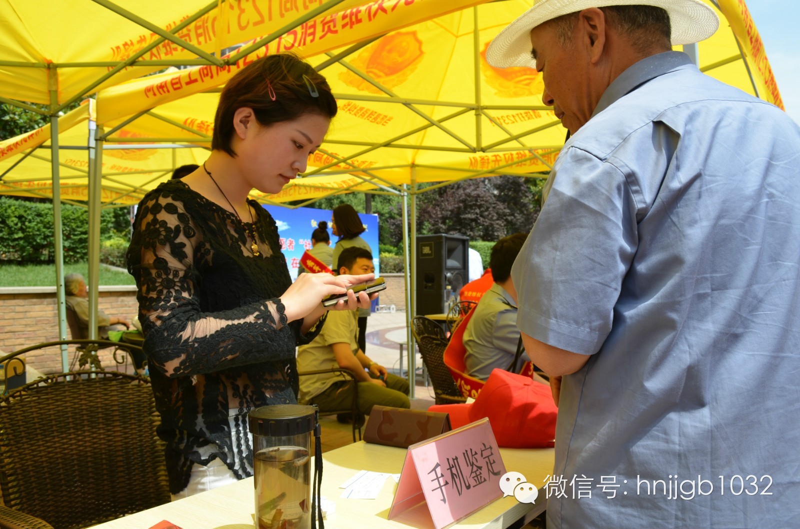 中國泰爾實驗室河南代理處的志愿者現(xiàn)場免費鑒定手機(jī)真?zhèn)巍?/p>