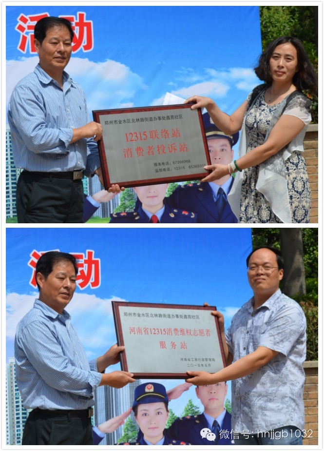 活動現(xiàn)場,省工商局趙中祥副局長還向鑫苑社區(qū)頒發(fā)了“12315聯(lián)絡(luò)站、投訴站”、“消費維權(quán)志愿者服務(wù)站”牌匾。