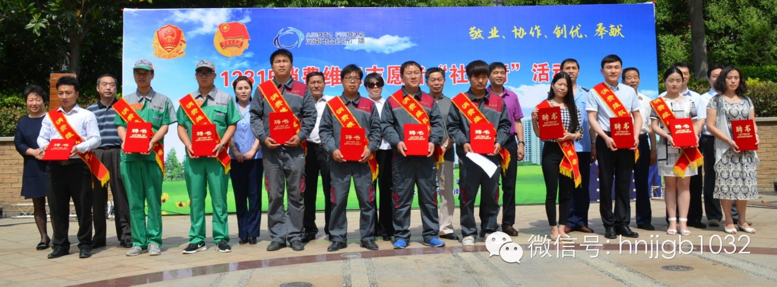 團(tuán)省委城市青年工作部殷世洲副部長、河南經(jīng)濟(jì)廣播欣悅副總監(jiān)、省工商局相關(guān)處室領(lǐng)導(dǎo)為12位“志愿者”朋友們頒發(fā)了聘書。