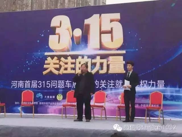 3月15日上午,河南首屆315問題車展鄭州市惠濟區(qū)三全路與長興路交叉口的鄭州裕華廣場舉辦,河南經(jīng)濟廣播聯(lián)合大象融媒民生頻道、河南省消費者協(xié)會、騰訊大豫網(wǎng),以及河南職業(yè)機電學(xué)院、鄭州環(huán)保產(chǎn)業(yè)協(xié)會室內(nèi)環(huán)境檢測治理服務(wù)中心、河南中小企業(yè)手機臺、河南至誠機動車司法鑒定所、予順律師事務(wù)所等多家單位聯(lián)合舉辦了“關(guān)注的力量——河南首屆315問題車展”。