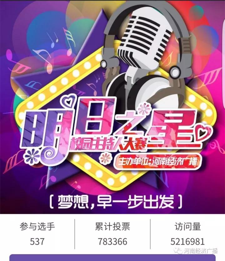 河南經(jīng)濟(jì)廣播·第三屆“明日之星”校園主持人大賽備受矚目,微信投票更是達(dá)到了五百二十一萬的訪問量!經(jīng)過鄭州、安陽(yáng)、南陽(yáng)、三門峽、駐馬店、洛陽(yáng)、開封、新鄉(xiāng)、商丘、林州、漯河、新鄭,十二個(gè)賽區(qū)十四個(gè)賽點(diǎn),二千六百余人的激烈角逐;再到?jīng)Q賽時(shí)選手的精彩表現(xiàn)。一路走來,有驚喜、有歡樂、有學(xué)習(xí)、有思考。