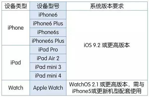 而線上支付條件要寬松一些,所以iPad Air 2、iPad mini 3、iPad mini 4以及iPad Pro也可以使用啦。