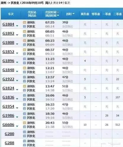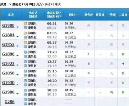 最快的一趟車(chē)G368/9,19點(diǎn)05分從上海虹橋始發(fā),23點(diǎn)02分到達(dá)鄭州東,耗時(shí)3小時(shí)57分,中途僅??磕暇┖托熘菡荆溆嗔熊?chē)運(yùn)行時(shí)間都在4小時(shí)到5小時(shí)之間。