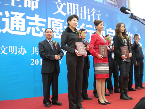 圖為: 河南省交通文明志愿者行動啟動儀式現(xiàn)場