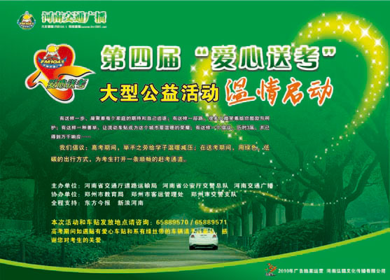 上圖為:河南交通廣播2010年全省愛(ài)心送考宣傳畫(huà)