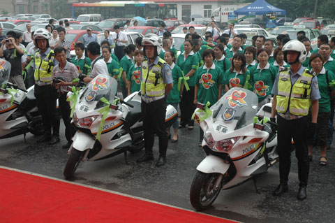 活動(dòng)現(xiàn)場(chǎng)匯集了許多愛(ài)心車友,鄭州市交警支隊(duì)也派出三個(gè)交警“飛鷹”小組參加啟動(dòng)儀式