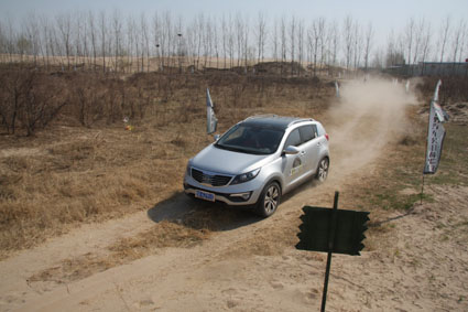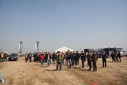?。ㄜ囉押嫌埃?br /> 報(bào)名參加這次越野活動(dòng)的河南交通廣播的愛心車友達(dá)到100多名?;顒?dòng)現(xiàn)場(chǎng),上百號(hào)人讓平時(shí)寂靜的黃河灘熱鬧起來,河邊的一塊空地上,一百多面旗子在迎風(fēng)飄揚(yáng)——“河南交通廣播”的LOGO下赫然印著“越野汽車公開體驗(yàn)營”九個(gè)大字,背景板不遠(yuǎn)處,就是體驗(yàn)駕馭越野車的賽場(chǎng)。駝峰、馬蹄坑、滾木路障、彈坑路、沙土路、連續(xù)轉(zhuǎn)彎……墨綠色背景的提示牌讓越野的氣息撲面而來。