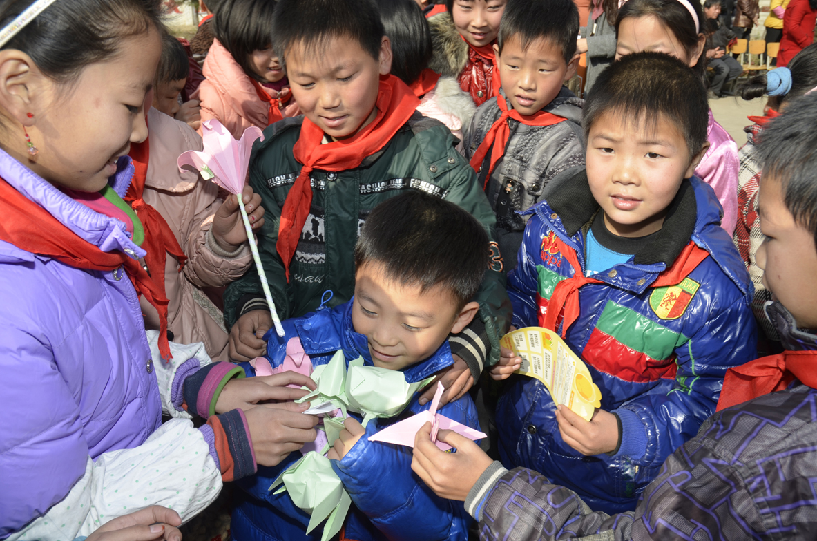 活動結束后,懂得感恩的學生現(xiàn)場為愛心車友演唱了《感恩的心》,并為城里的小朋友送上了自己疊的千紙鶴、百合花等折紙,善良淳樸的孩子還為城里的小朋友送上了山里的土特產(chǎn),花生、紅薯、蓮藕等,一袋袋的塞到小朋友手里,在場的家長看到,感慨的說:“山里孩子很純真、很善良?!?/span>