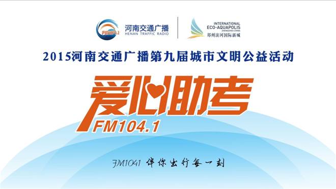 2015河南交通廣播全省“愛心送考”華美升級(jí)為 “愛心助考”,除了常規(guī)車友領(lǐng)取愛心助考、家有考生車貼外,領(lǐng)取時(shí)間和地點(diǎn)后期會(huì)公布,敬請(qǐng)鎖定FM104.1。