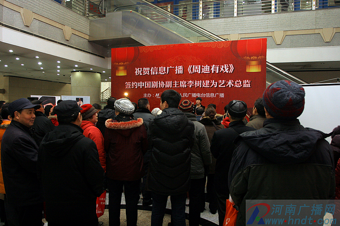 1月17日上午,河南人民廣播電臺《周迪工作室》掛牌儀式及中國戲劇家協(xié)會副主席李樹建先生受聘《周迪有戲》欄目藝術總監(jiān)簽約儀式在廣播大廈一樓大廳舉行。河南人民廣播電臺副臺長李海軍、河南人民廣播電臺信息廣播總監(jiān)李金鋒出席儀式。