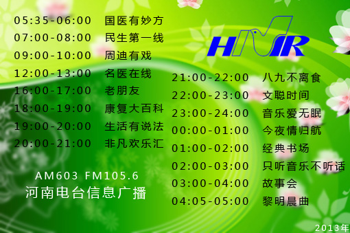 民生零距離,健康新生活!AM603、FM105.6河南電臺信息廣播,全天16檔精彩節(jié)目,敬請關(guān)注。