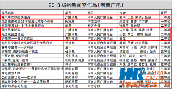 11月8日,第十四個(gè)記者節(jié)之際,由鄭州市委宣傳部、鄭州市記者協(xié)會(huì)舉辦的首屆“鄭州新聞獎(jiǎng)”頒獎(jiǎng)儀式在鄭州舉行,河南人民廣播電臺(tái)有9件作品分獲一、二、三等獎(jiǎng),其中,信息廣播選送的4篇作品全部入圍,斬獲一等獎(jiǎng)1件,二等獎(jiǎng)3件。