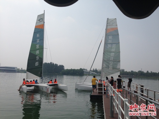 映象網(wǎng)訊 (記者 殷清卉)提起帆船,大家一般想起在大海里暢游的感覺(jué),但是現(xiàn)在在我們鄭州也可以玩帆船了,7月27日,來(lái)自全省各地的300多名幸運(yùn)聽(tīng)眾,便在河南電臺(tái)信息廣播《房產(chǎn)江湖》節(jié)目組的帶領(lǐng)下,在雁鳴湖國(guó)際假日公園過(guò)了一把帆船癮。