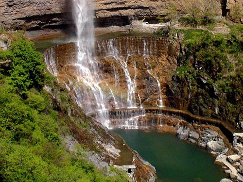 紅石河碧水橫溢、紅綠相映、色彩斑斕、明麗如畫,因海拔1100米被譽為“太行天河”。從紅石河畔俯瞰,山谷幽深、流水潺潺,河水順著光潔平整、錯落有致的紅石板流淌不息,直沖而下形成又一著名景點——天河大瀑布。紅石河的右畔是觀音洞,觀音洞里的泉水常年不斷、甘甜可口,用來泡茶增三分香,煮飯增加三分甜,現(xiàn)在敞開供應,保你一杯解風塵,二杯去疲乏,三杯大汗落。 八里溝的山,八里溝的水,甚至八里溝的每一塊石頭都引起世界的好奇。景區(qū)森林覆蓋率達90%,如今,八里溝景區(qū)已經(jīng)成為國內(nèi)很多前衛(wèi)、時尚的游客非常向往的一個人間天堂、世外桃源,也是春季旅游的經(jīng)典線路。