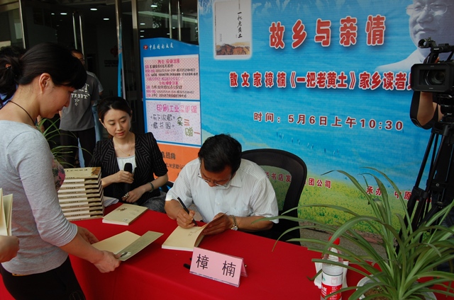 新疆著名散文家樟楠,5月6日在省會(huì)中原圖書大廈舉行讀者見面會(huì),并現(xiàn)場簽售新書《一把老黃土》。樟楠原名張可讓,河南靈寶人,現(xiàn)為新疆自治區(qū)黨委宣傳部副部長、《宣傳大視野》雜志總編輯。書中,樟楠深情地描繪了故鄉(xiāng)的人和事,用簡潔的筆法,表達(dá)了作者對家鄉(xiāng)的一片深情.