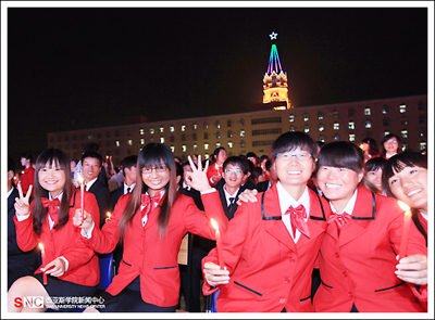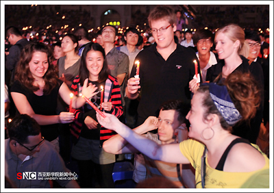 金秋九月,在同學(xué)們的陣陣掌聲與歡呼聲中,2012教育廣播——西亞斯迎新燭光晚會拉開帷幕。晚會一開始,首先由大四學(xué)生代表將象征著西亞斯精神的火炬依次傳遞給低年級同學(xué),最終傳遞至大一新生手中,并以此點燃全校師生手中的蠟燭來照亮整個天空。面對這樣的迎新晚會,大一新生們顯得非常激動。