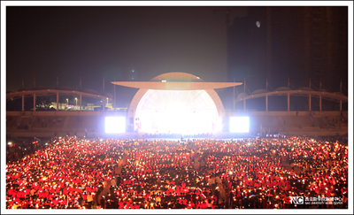 天空中煙花燦爛,天空下燭光熒熒,晚會逐漸落下帷幕