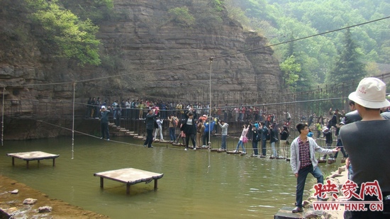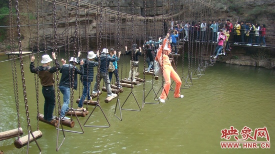 盡管鄭州的天氣忽冷忽熱還時(shí)不時(shí)的狂風(fēng)大作,但是在這里天氣卻晴朗明媚,溫度也正好適宜外出游玩。當(dāng)然,玩的嗨才是最關(guān)鍵的!景區(qū)內(nèi)除了誰(shuí)都不會(huì)錯(cuò)過(guò)的風(fēng)景名勝外還有很多有趣的娛樂(lè)項(xiàng)目:比如過(guò)吊索:看起來(lái)簡(jiǎn)單的吊索其實(shí)需要有很好的體力和身體協(xié)調(diào)力,一不留神就可能狼狽的掉入半米深的池水中。還有劃沖鋒舟,非??简?yàn)團(tuán)隊(duì)的協(xié)作。不過(guò)最好玩的卻是在大巴車上,“樂(lè)活”的工作人員們把最自己具特色的電臺(tái)節(jié)目“知道不知道”搬上了大巴車,并邀請(qǐng)了電臺(tái)的明星主持亞楠來(lái)與大家互動(dòng),把無(wú)聊的旅途變得趣味橫生。
